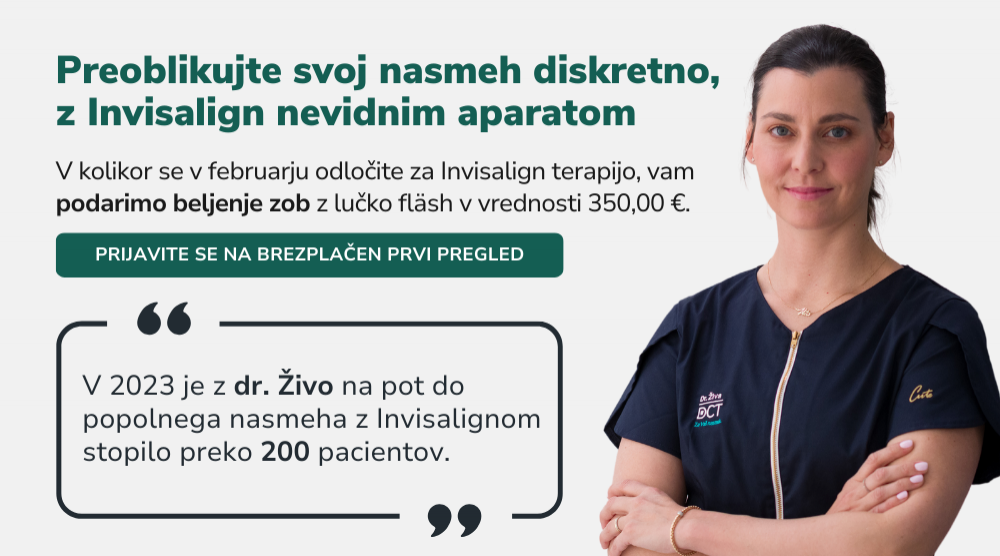 V kolikor v času od 1.2. do 29.2.2024 potrdite vašo ponudbo za Invisalign, vam mi podarimo beljenje zob z lučko fläsh, ki ga lahko izkoristite sami ali pa ga komu podarite.